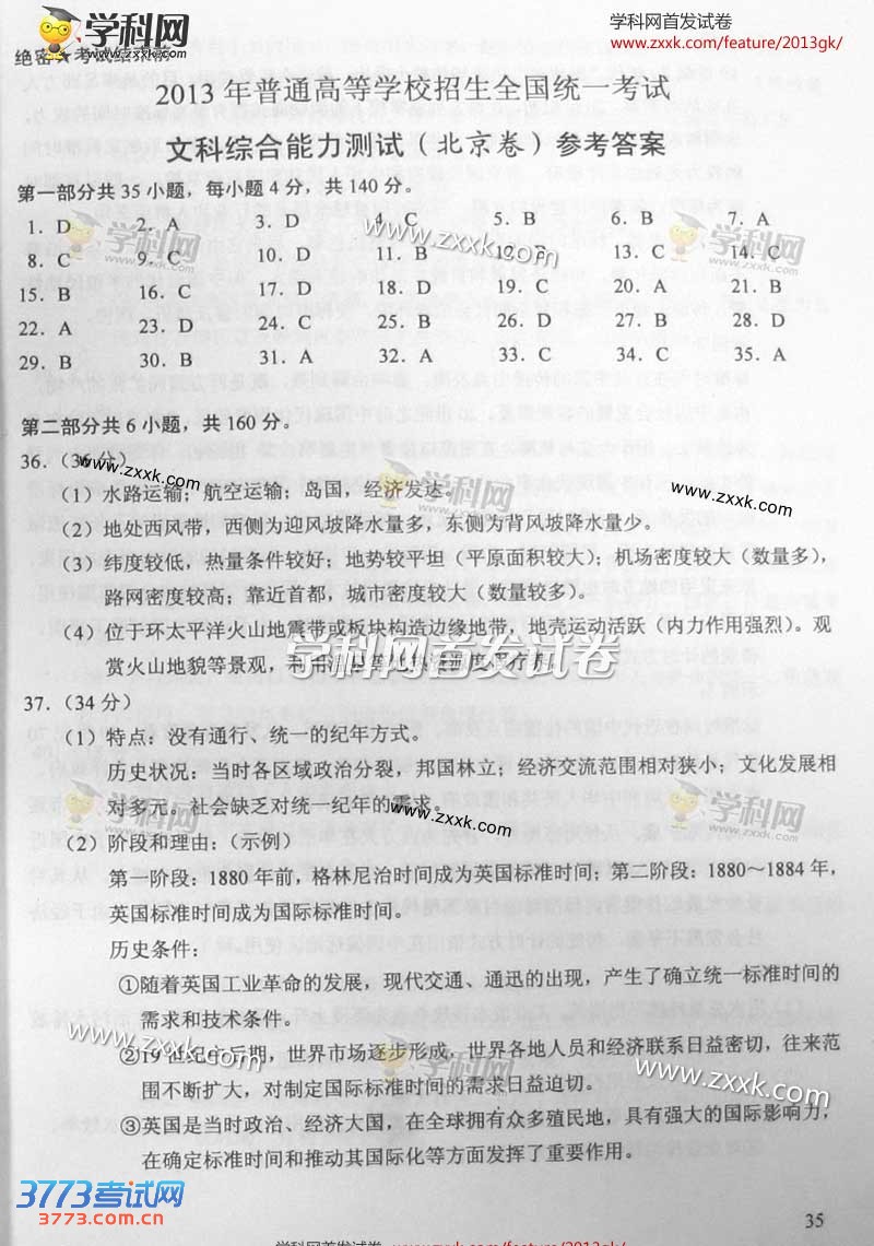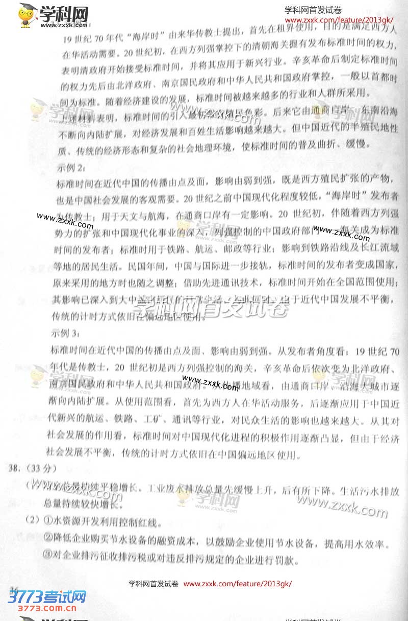 北京高考][组图]2013北京高考文综试题(答案请关注)
