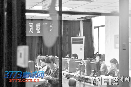 2013年高考语文阅卷工作昨天起在北京大学计算中心内正式开始,记者现场探访发现,因为在试评阶段,计算中心6个用于高考语文阅卷的机房只有1号、2号、3号开启,4、5、6号仍处于封闭状态,但相关安保措施已经部署完毕。全面阅卷从12日开始。
