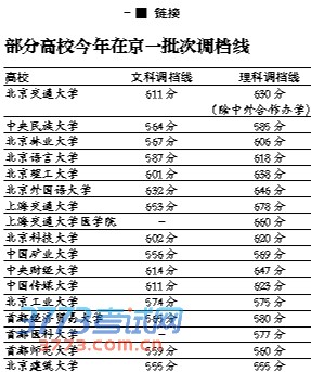 除了北大和人大,文理调档线由“双降”改为“双升”的还有北科大、北林大、北交大等高校。此外,像北京外国语大学,在去年文理线双双飙升的基础上,今年文理科提档线再涨。其中文科提档线为632分,比去年上升58分;理科提档线为646分,比去年上升43分。