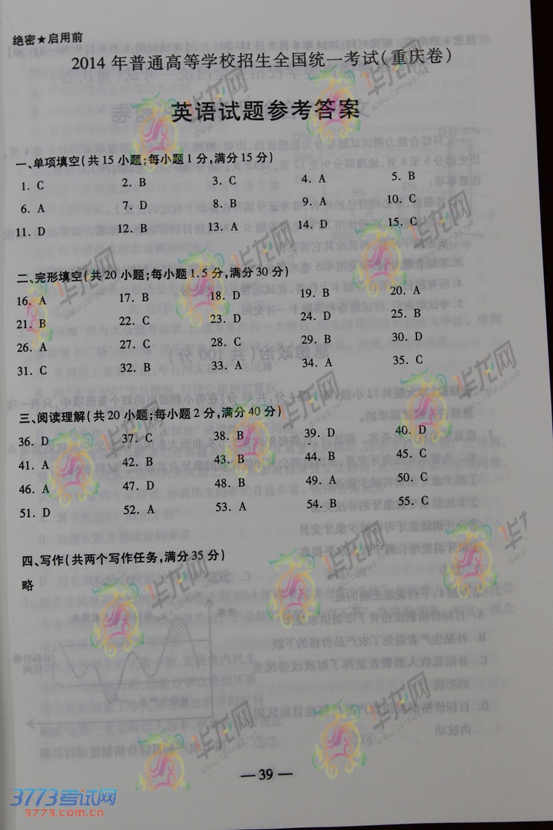 [图文]2014年重庆高考英语答案发布