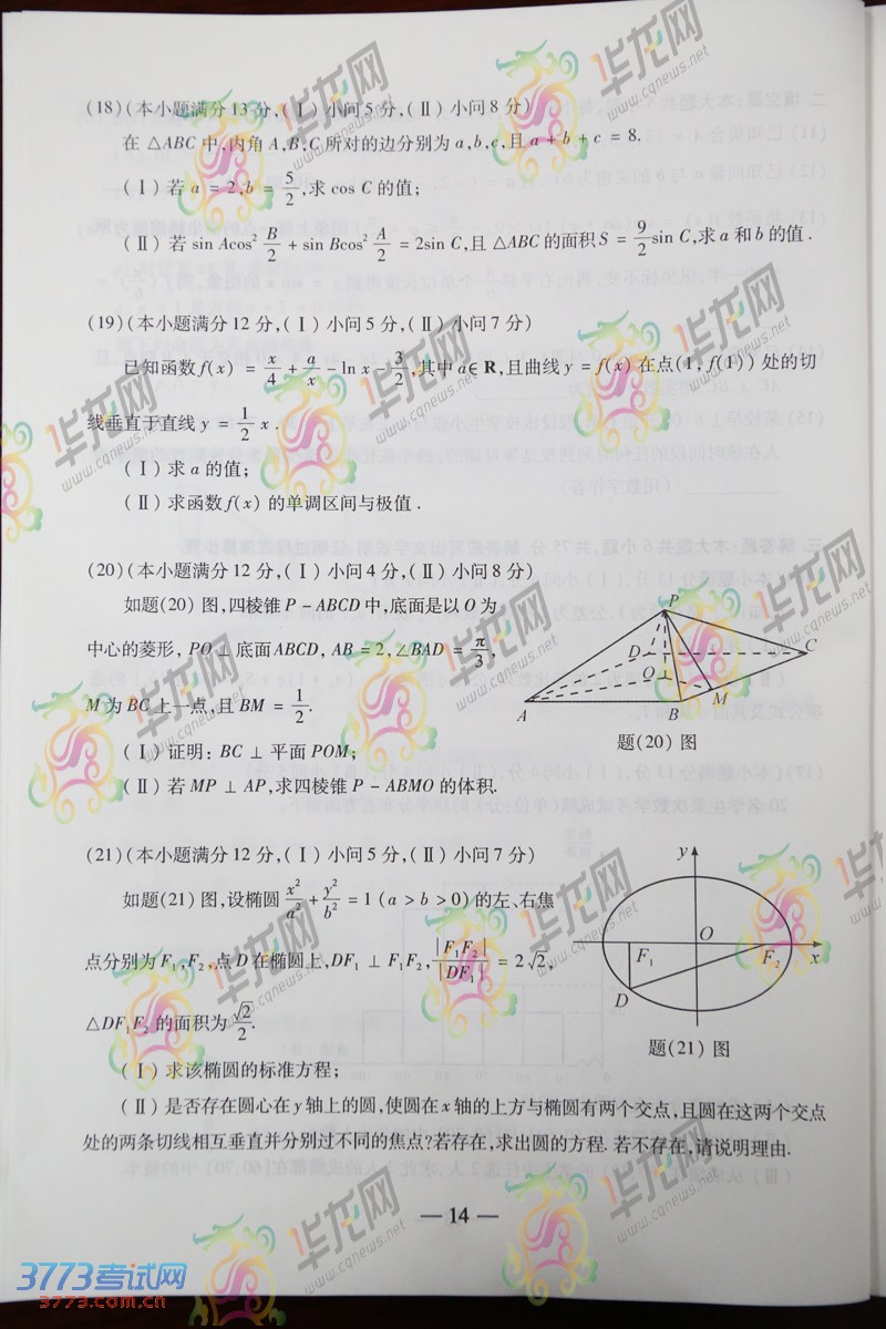 [组图]2014重庆高考数学文科试题试卷