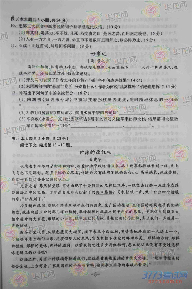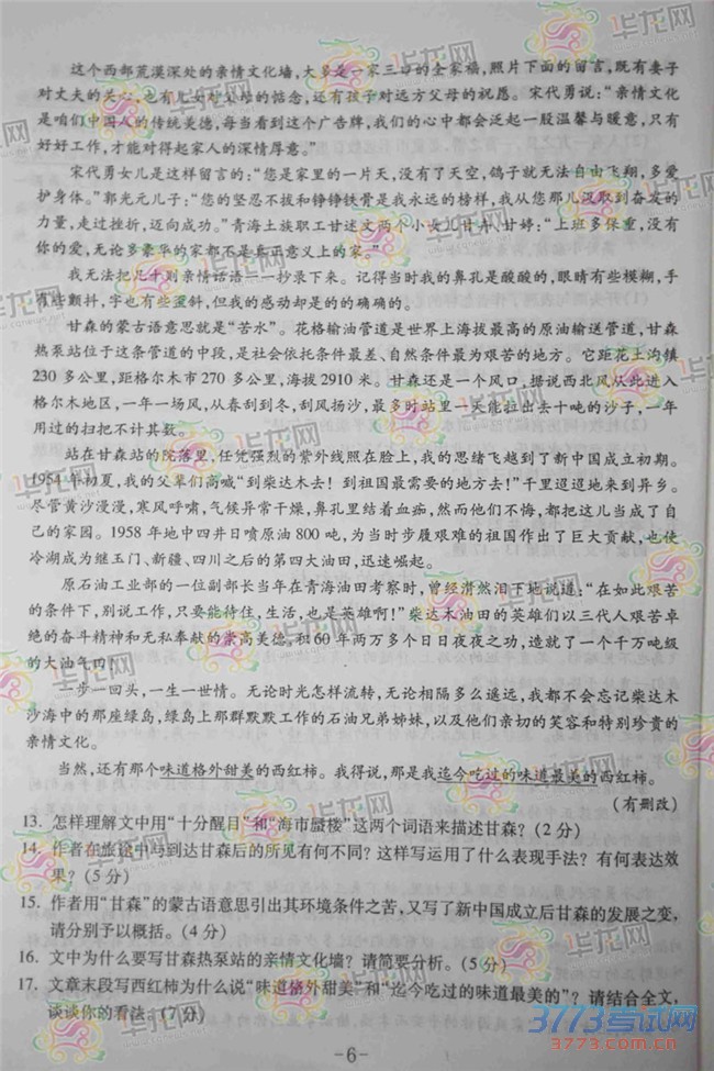 [组图]2015重庆高考语文试题及答案