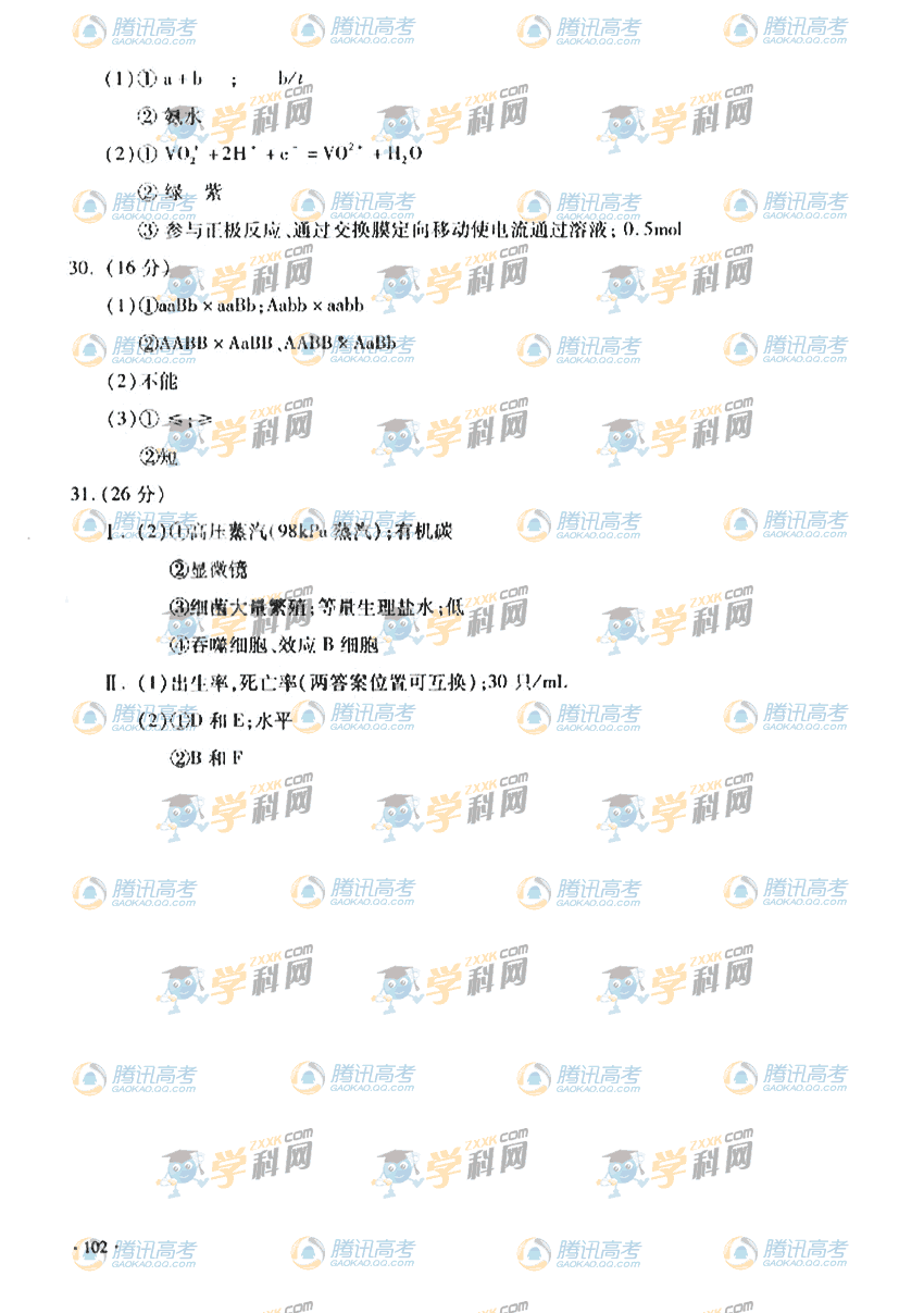 [组图]2010年重庆高考理科综合试卷答案