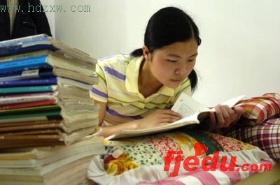 在思莲的出租房里连个书桌都没有。回到家后,她拿枕头当桌子,趴在床上看书。记者看到,她的枕边,十几本辅导书垒起厚厚的一摞。