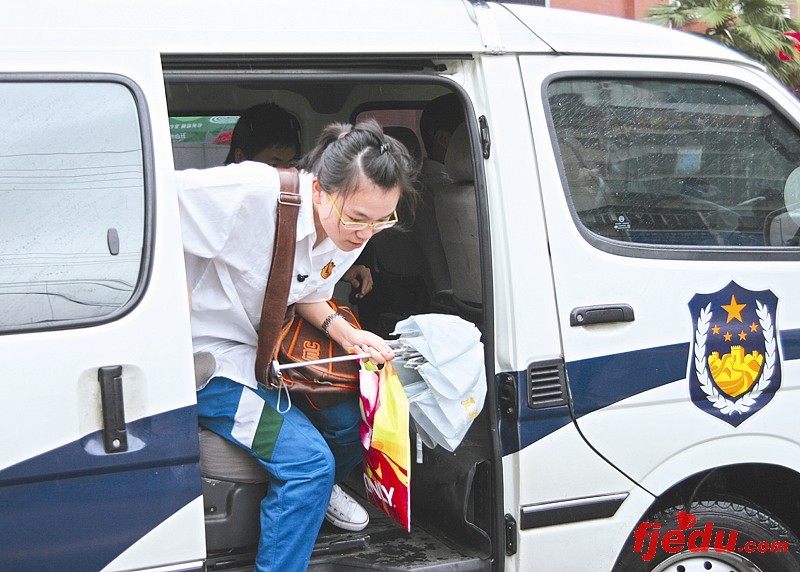 台海网6月8日讯 (海峡导报记者 房舒)8点58分,离开考仅有2分钟了,家住五通湖口的考生小王在警车的护送下,安然抵达考场。谁能想到半小时前,她被堵在路上,着急得差点想放弃考试了。