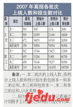 通过以下表格,就可以很清楚地看出,每个批次的上线人数事实上是多于招生数,这是因为每个批次的最低录取控制线都是按照一定比例扩大的,所以,处于最低录取控制线边缘的考生的志愿就不能填报得太高。