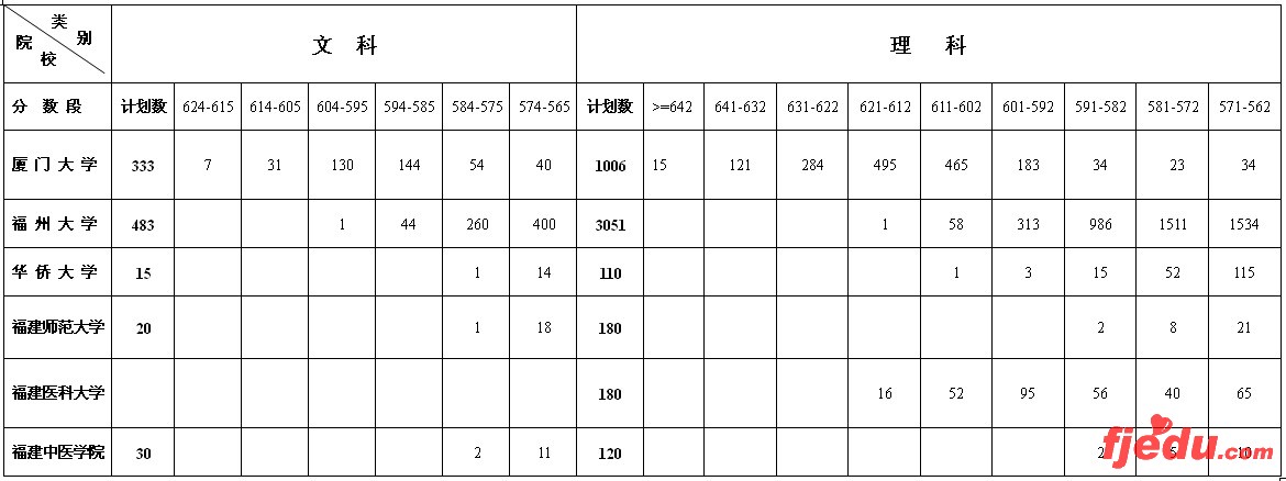 [图文]福建省内6所高校本一批一志原生源统计表