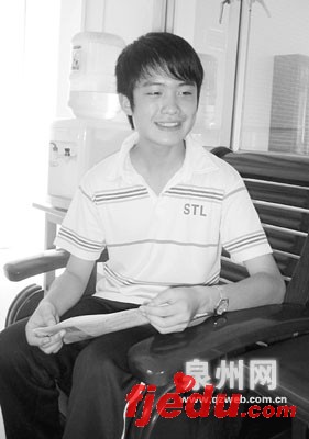 我们约了谢立鑫在他的母校德化一中见面。在副校长余德兴的办公室,谢立鑫端正安静地坐着。T恤、布裤、休闲鞋。谢立鑫肤色白皙,话不多,回答问题前总是要想一想,但回答却非常干净简练。余德兴告诉记者,谢立鑫在答题时也简练规范,平时模拟考试,老师不用看名字,也能迅速找出他的答卷。