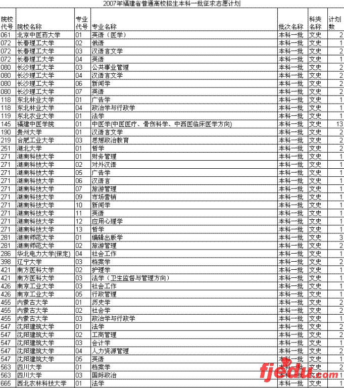 本一批征求志愿撤销如下计划,请广大考生不要报考此专业。 2007年福建省普通高校招生本科一批征求志愿计划 |