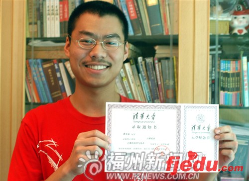 20日下午3时许,记者随同邮政局的速递车,来到冶山路的黄文溢同学家。黄文溢就读于福州一中,高考“祼分”671分,因在全国计算机联赛中获一等奖加20分,因此以691分的高分投档清华大学。