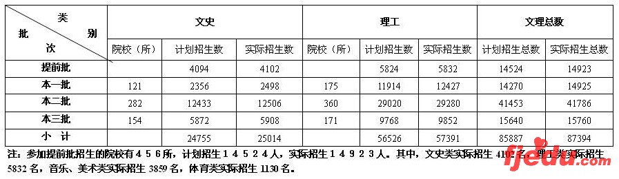 [图文]2007年福建高考各批次录取人数统计