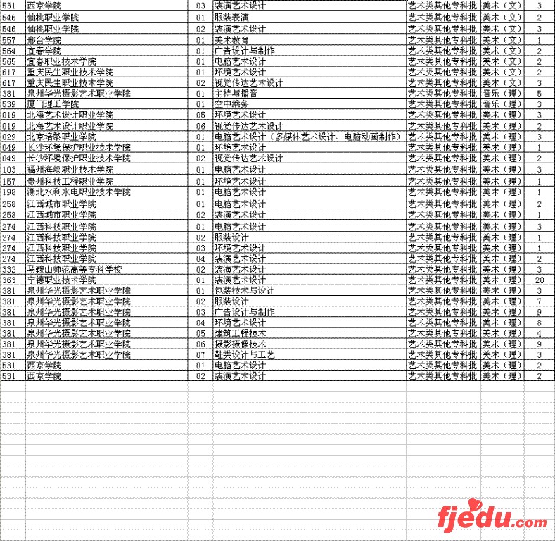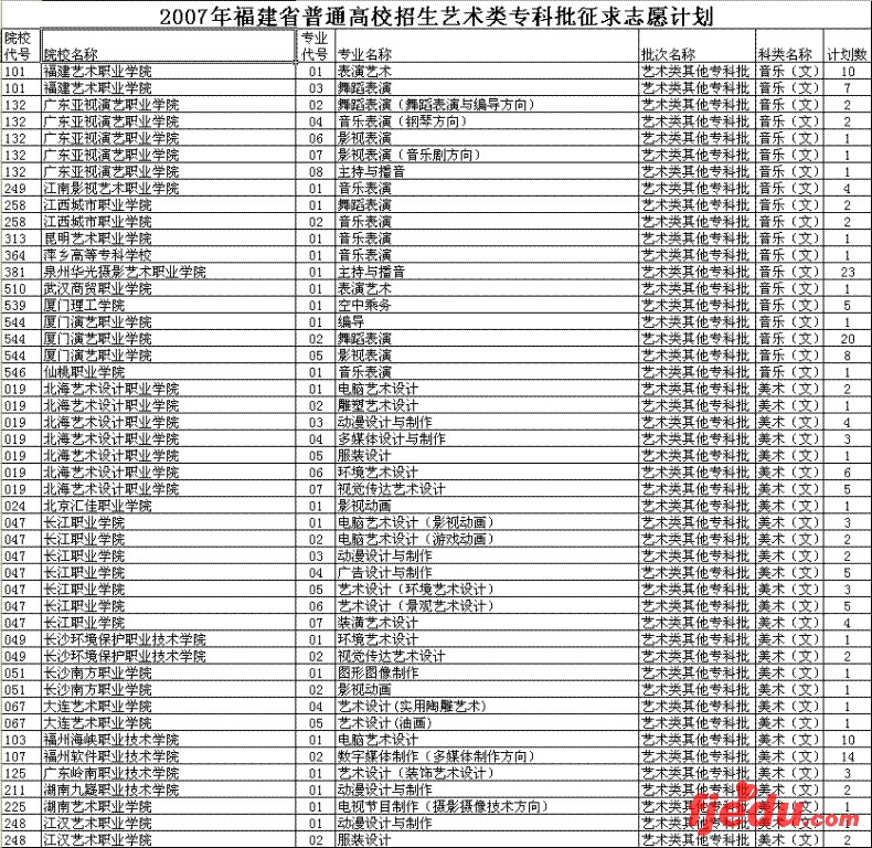[组图]福建省2007年艺术类专科批征求志愿计划