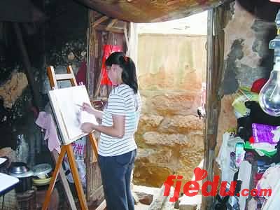 想考艺术专业的贫困学生正在画画。