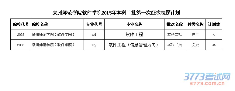 [图文]泉州师范学院软件学院2015年本科二批第一次征求志愿计划
