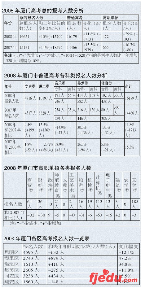 应届生包括户口在厦门但是在外地就读的应届考生,“往届生”指的是往年落榜高中毕业生,“社会考生”包括以同等学力报考的考生。