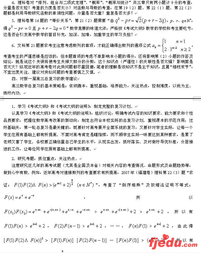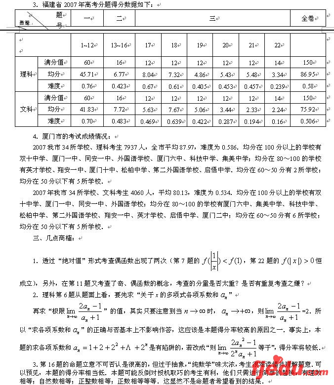 2007年高考(福建)数学科分析及教学建议