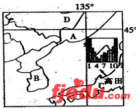 (2)高田位于C岛北岸,冬季降水量比夏季多,分析说明其降水量季节差异产生的原因。(6分)