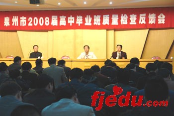 为了进一步搞好下一阶段的高三复习教学工作,4月1日,泉州市召开2008届高中毕业班质量检查反馈会。参加会议的有各县(市、区)教师进修学校教研室主任、各普通高中校(完中)教务主任和泉州市教科所部分高中教研员。泉州市教育局党组成员、副局长曾文汉出席会议。