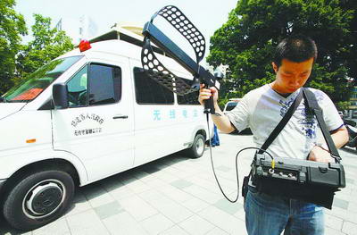 6月4日,工作人员使用便携式无线电监测仪模拟扫描考场。据悉,福建全省将启用无线电监测系统,重点打击高考考场高科技作弊行为。新华社发