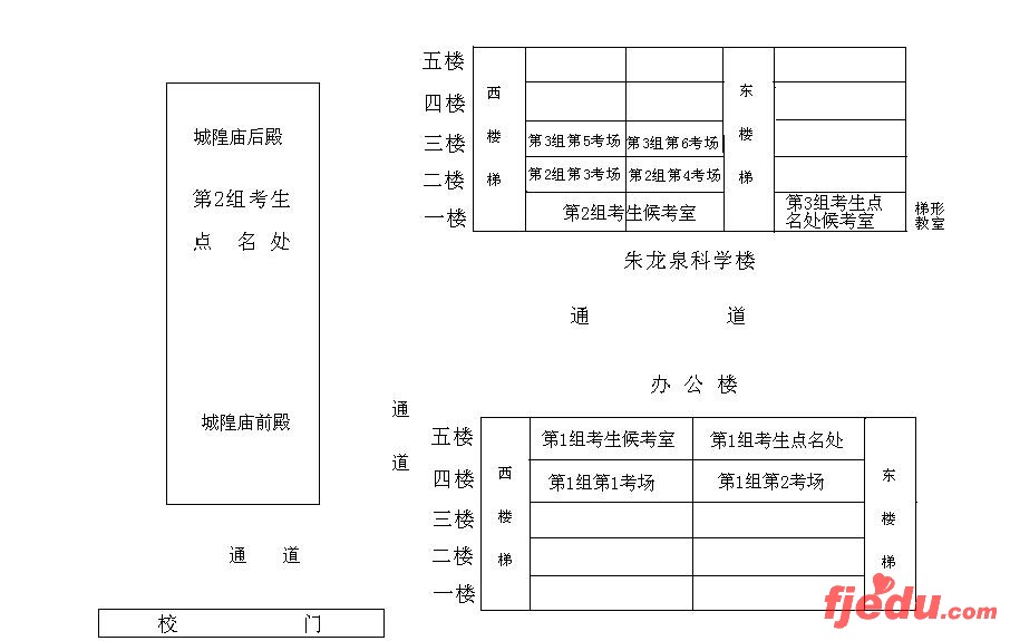 泉州六中考点考场设置平面图如下,考生要结合分组安排表找准自己的点名处和候考室,如有不清楚的,要找考点工作人员咨询。(单击平面图可以放大)