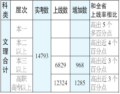 备注:(1)上线数、增加数和上线率均为累计(2)数据未包括体、音、美考生上线情况
