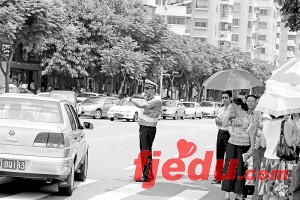 昨日,湖里交警在六中考场外维持秩序。陈理杰 摄