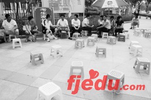从本报记者兵分7路在岛内外各考点探访的情况看,各考场很平静。厦门双十中学的考点昨日还特地为陪考家长准备了几把太阳伞和小凳子。不过,这些凳子没怎么发挥上作用,陪考家长几乎没有。记者在集美中学考点看到,一些考生还传阅起俏皮短信,更有家长表示,现在录取率高了,“人人都可上大学”,大家都不太在乎高考了。