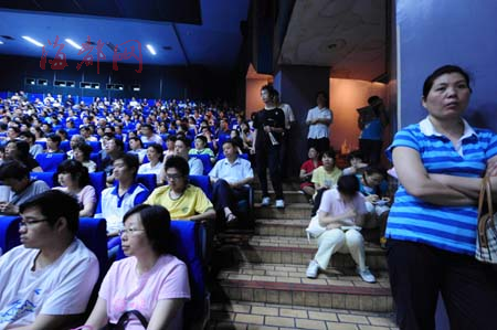 本报讯 昨日上午,海都“2009高招填报志愿”讲座开讲,福州时代中学副校长、特级教师郭杰森为考生家长带来一场“如何快速填报平行志愿”的讲座,详细介绍了今年我省高招录取形势,对平行志愿的益处和风险进行了客观分析,引导考生家长正确选择院校与专业,精彩演讲吸引了近千名考生家长(如图)。有关填报志愿讲座的相关报道详见本周四出版的《教育周刊》。