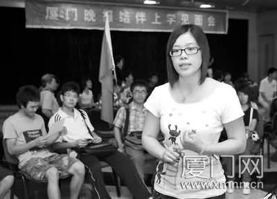 在武汉的厦门同学有个QQ群,里面已经有40多位同学了,黄晓雯一一记下去武汉的同学的QQ号,要帮他们先加入“组织”。她说,有“组织”的好处就是:刚到学校,有人带你买被褥,有人带你去食堂,中秋节还有人一起博饼……