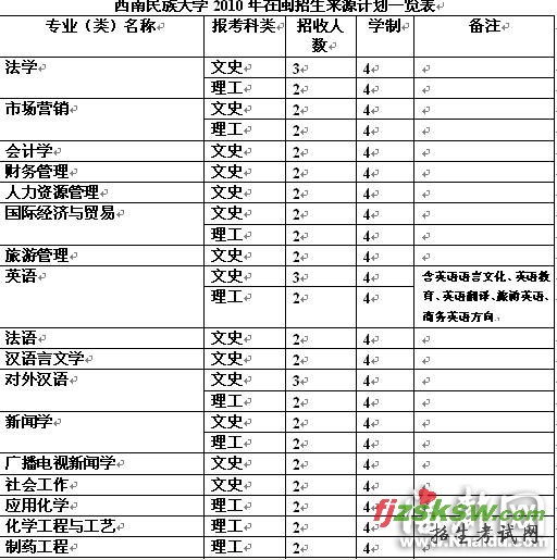 海都网讯 西南民族大学今年在福建招收105人,其中文史37人,理工68人。学校普通本、专科专业面向全国招收汉族在内的各民族考生,其中少数民族考生约占招生总数的65%。预科只招收少数民族考生。在我省预科班共招收9名考生(文史4、理工5人)。