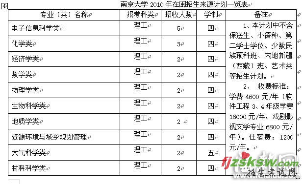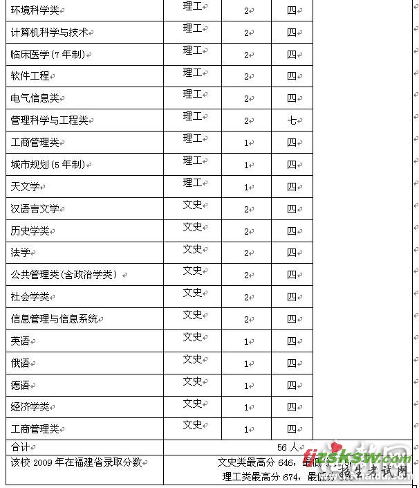 南京大学今年计划面向福建招收56人,其中文史类17人,理工类39人,文史类招生计划比去年略有减少。今年南大的招生亮点是:考生录取专业时的分数级差有调整,从“3、2、1、0”调整为“2、1、1、0”,专业级差缩小可以更大程度的满足考生专业志愿。