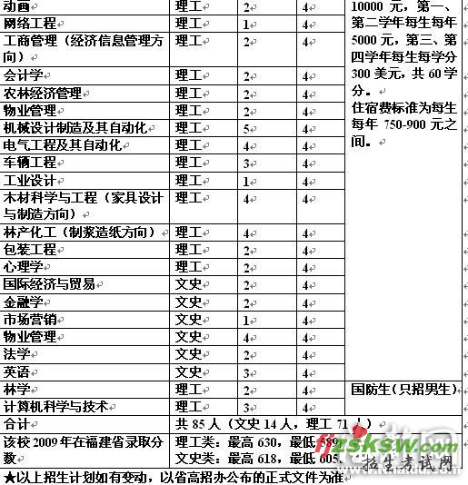 海都网讯 北京林业大学今年在闽招收共85人(文史14人,理工71人)。其中林学、计算机科学与技术招收5名国防生(只招男生)。动画专业近几年才开始在我省招生,要求一定绘画基础。
