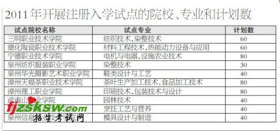 据了解,福建省教育厅要求高职院校在申报试点“注册入学”的专业时,要求是有较大的发展前景,但目前还不太受考生关注的专业。