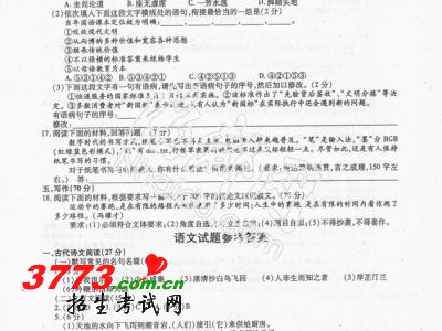 [组图]2012福建高考语文卷及答案下载