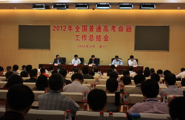 11月5-8日,2012年全国普通高考命题工作总结会在厦门召开,会议由教育部考试中心主办、福建省教育考试院承办。教育部考试中心李光明副主任主持会议,厦门市教育工委副书记、教育局长赖菡致欢迎辞,省教育厅薛卫民副厅长介绍了福建经济社会发展情况以及教育考试招生改革的具体实践,福建省教育考试院曾能建院长出席大会。