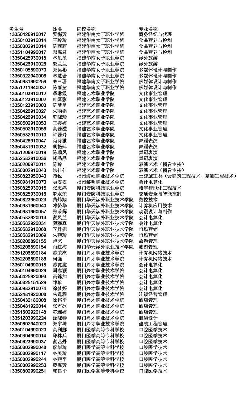 [组图]2013福建中职推免第三阶段录取考生名单