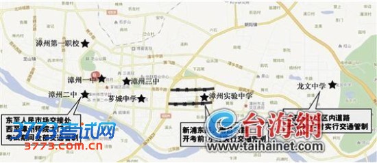 在漳州实验中学所在的新浦东路、南昌东路,龙文中学所在的蓝田开发区区内道路,在开考前1小时也实行交通管制。