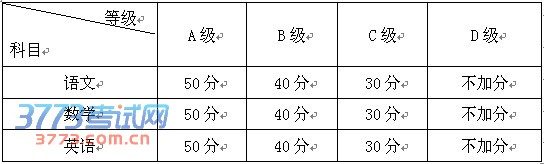 考生中学阶段学业水平考试或中职生二三学年成绩满分100分,加分项目如下: