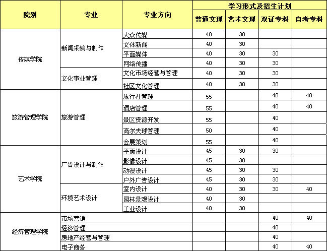 注:以上所有招生专业均为专科专业,学制均为3年。
