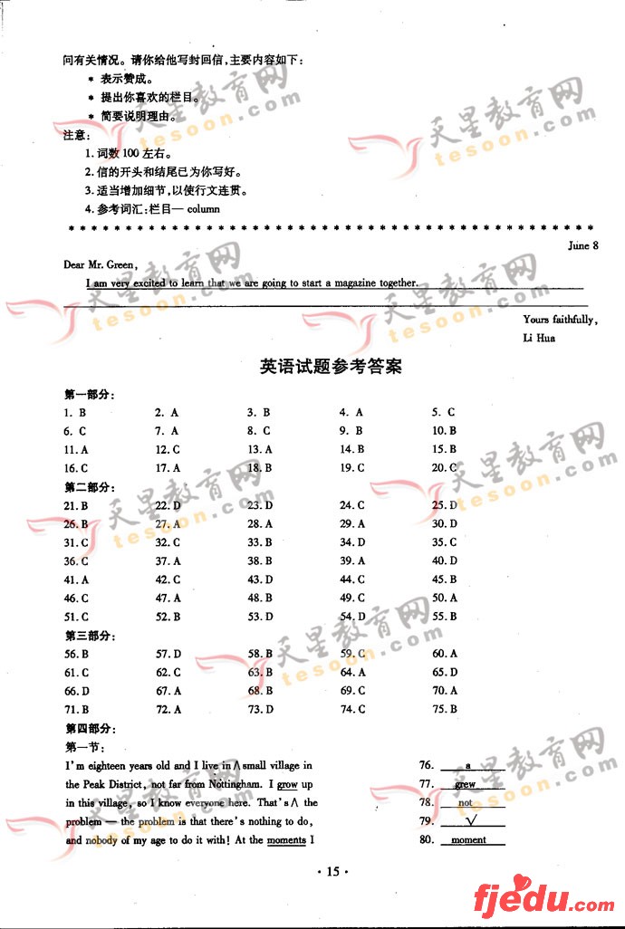 [组图]2007年安徽省高考英语试题及答案