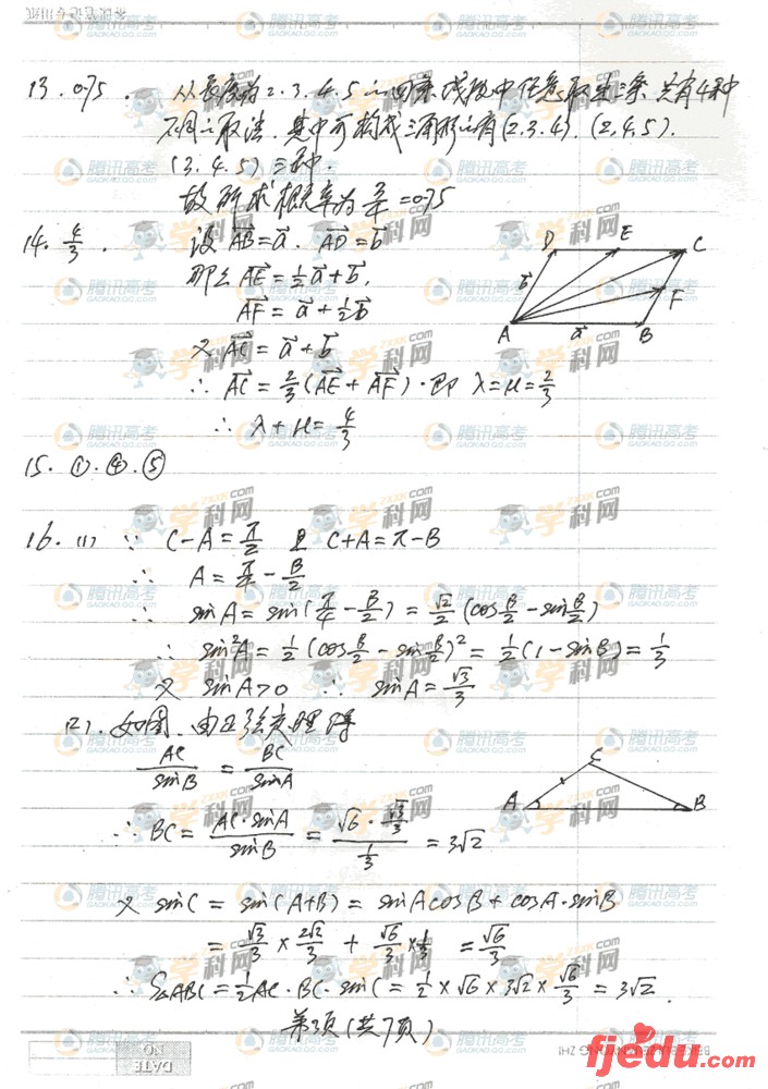 [组图]2009年安徽高考卷数学文试题答案
