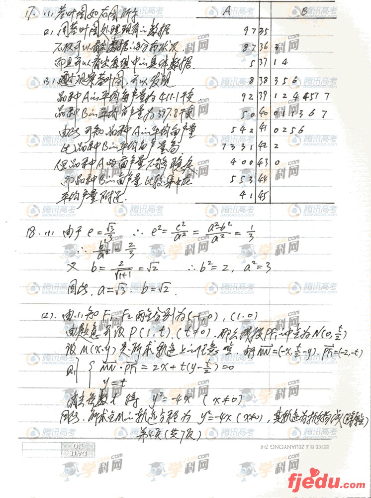 [组图]2009年安徽高考卷数学文试题答案