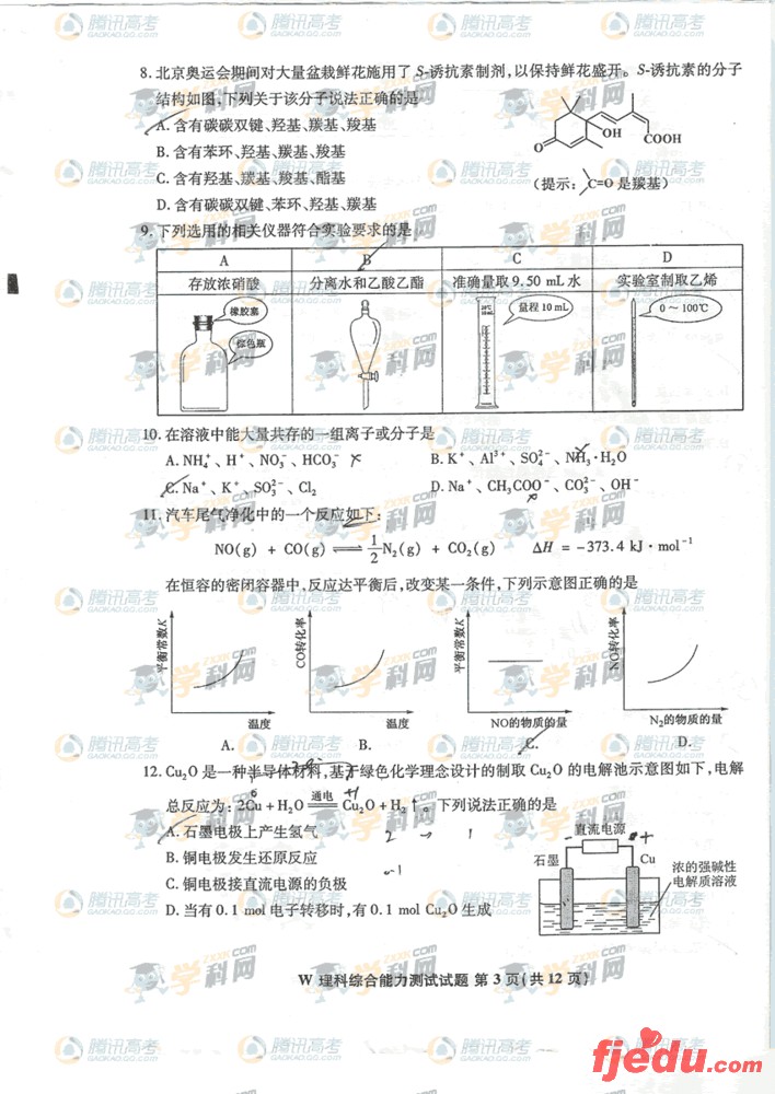 [组图]2009年安徽省高考卷理综试题及部分答案
