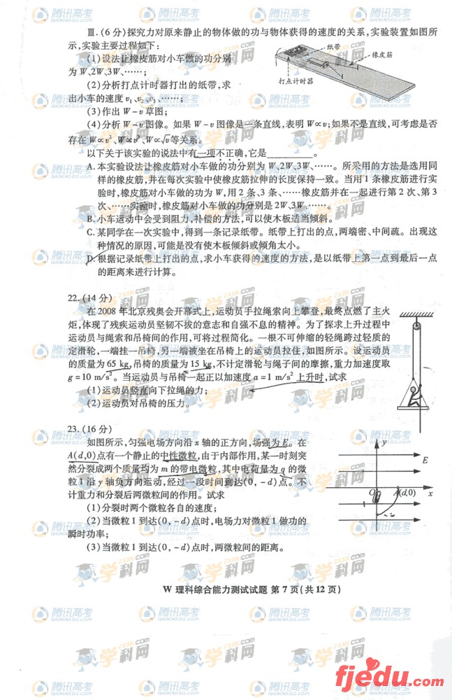 [组图]2009年安徽省高考卷理综试题及部分答案