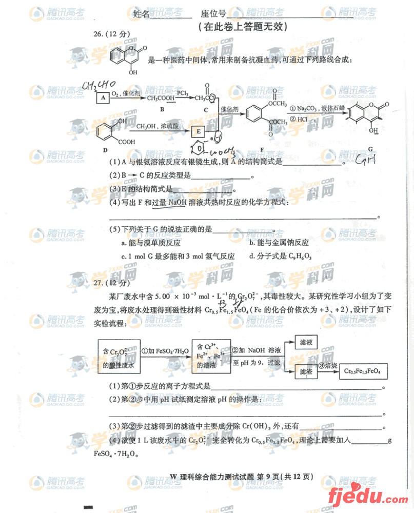 [组图]2009年安徽省高考卷理综试题及部分答案
