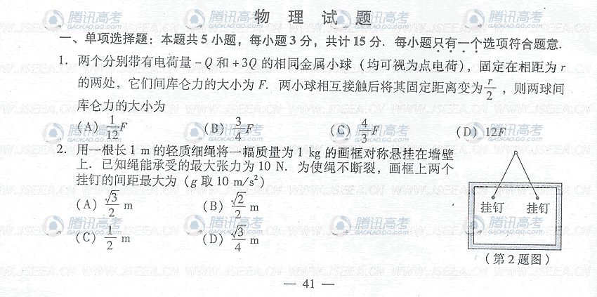 [组图]2009年江苏省高考物理试题卷及答案