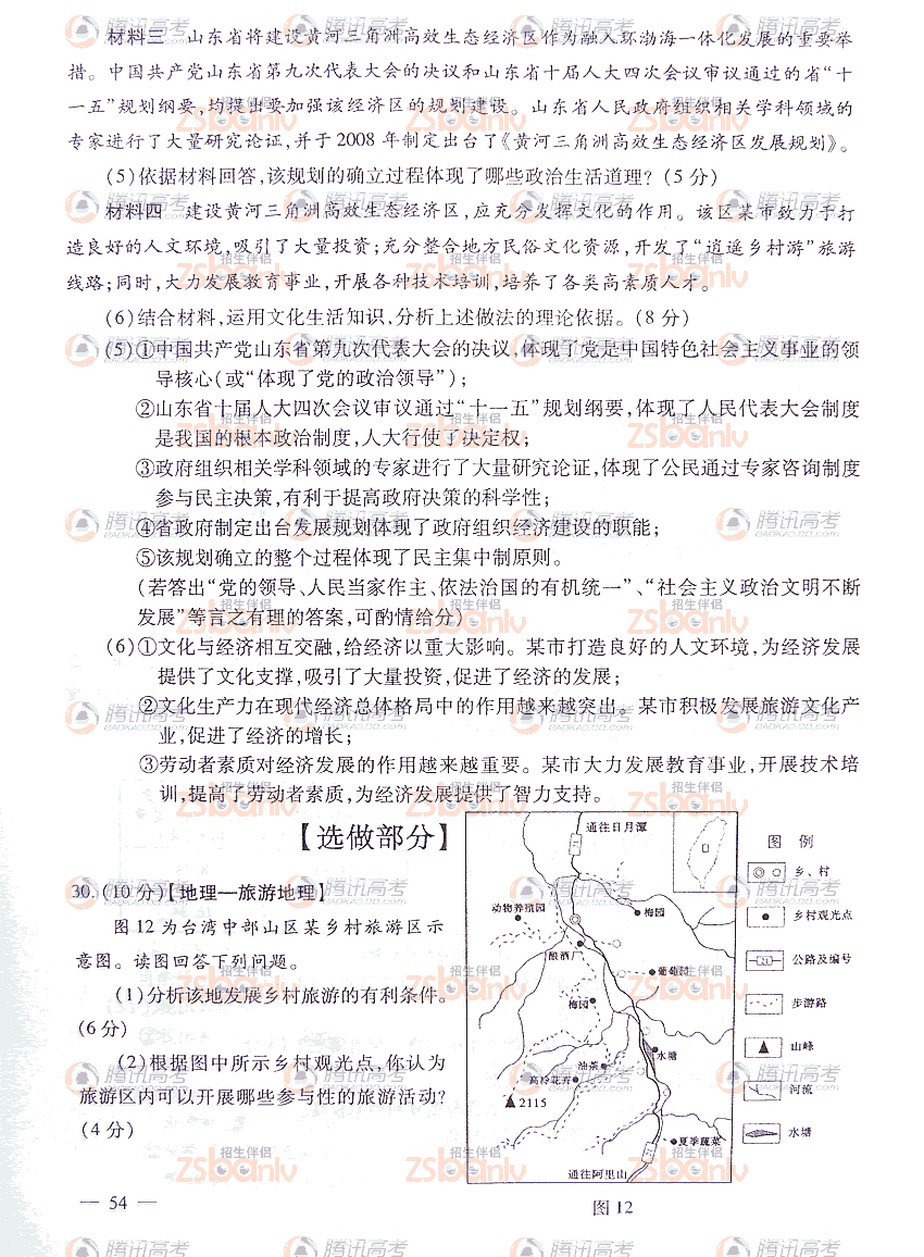 [组图]2009年山东高考卷文综试题及答案