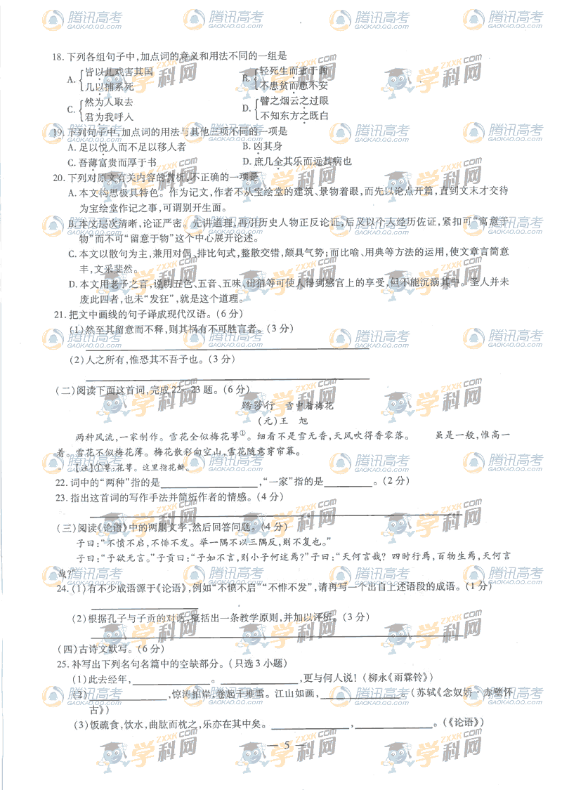 [组图]2009年浙江高考语文试题卷及答案