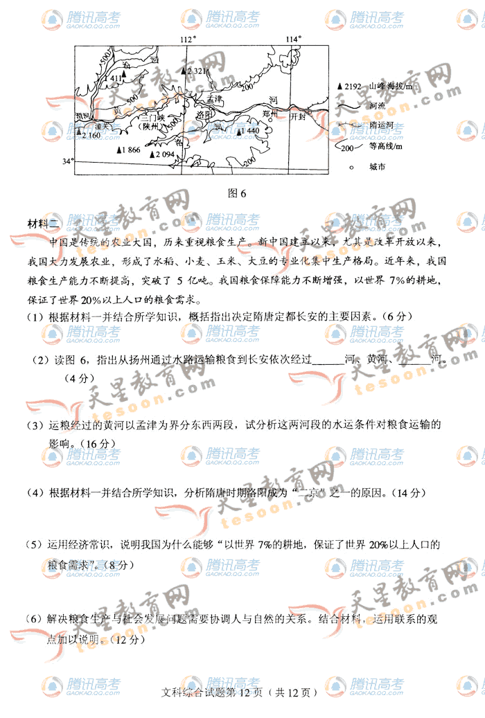 [组图]2010年河北河南山西广西西藏高考文综试题(全国1卷)
