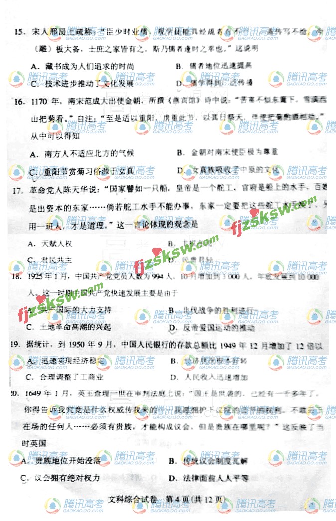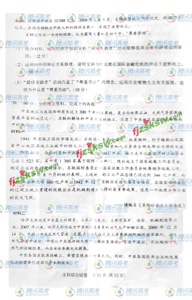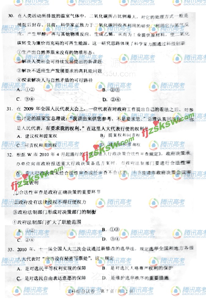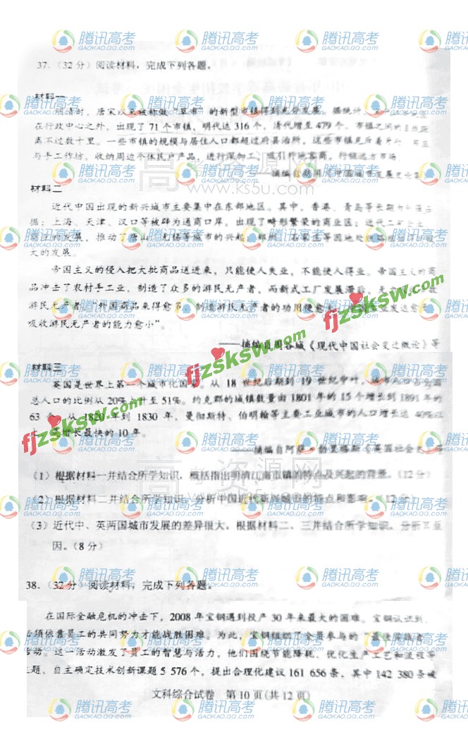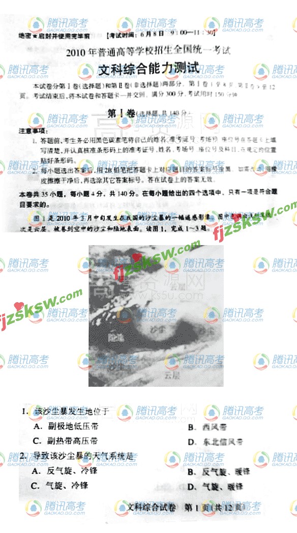 [组图]2010年全国2卷高考文综试题(云南 贵州 甘肃 青海 新疆 内蒙古)